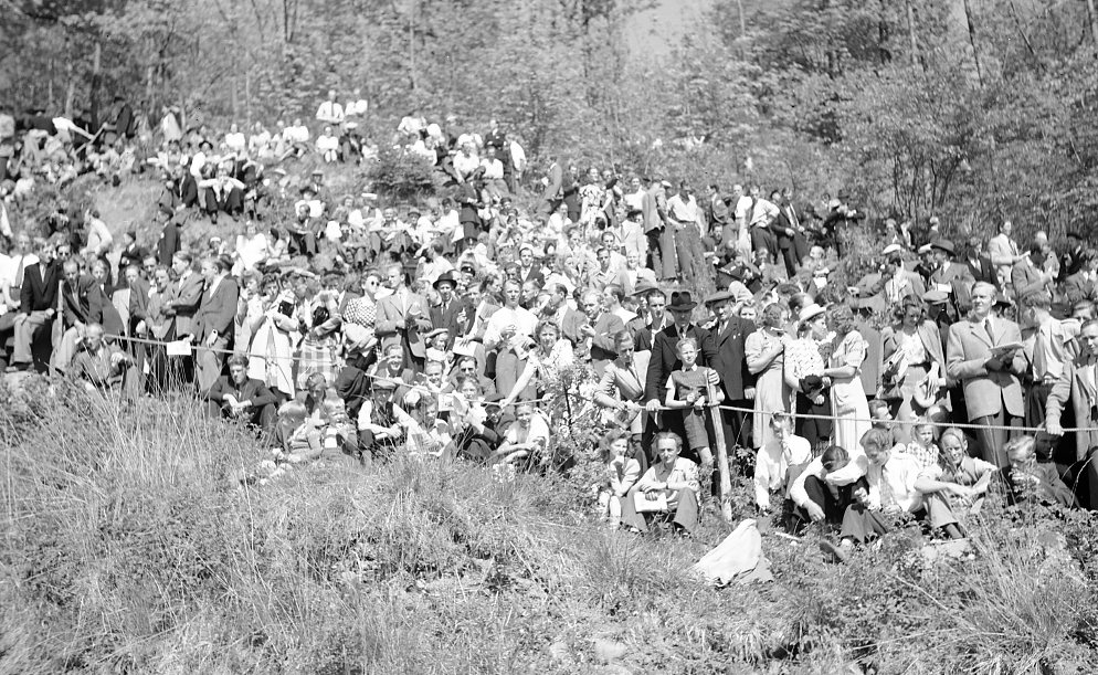 Motorcykeltävling. Publik. Backtävling i Klevaliden, Huskvarna?