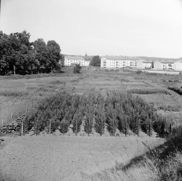 Bostadsomåde på öster i Jönköping. Tornet på Östra skolan i bakgrunden.