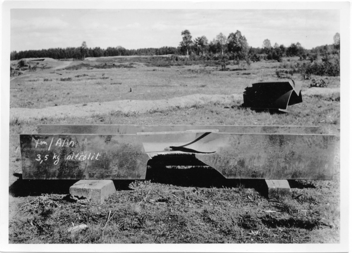 Skador efter sprängningsprov. Sprängämne 3,5 kg nitrolit.
