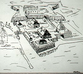 Titel: Tyggården med Jönköpings slott i bakgrunden. Skiss.