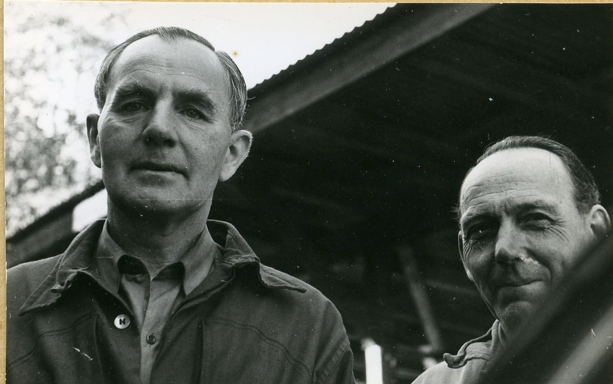 Titel: Tygverkmästare Bengtsson och tygarbetare Sundin i motorverkstaden.