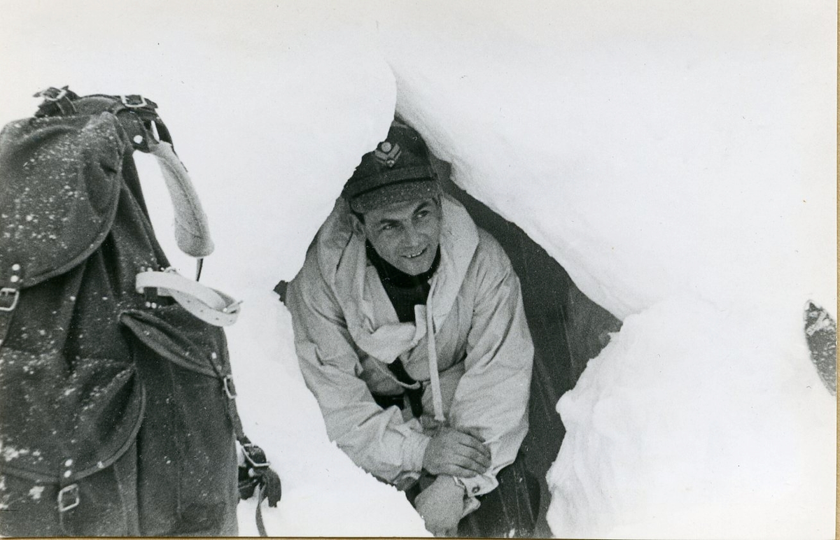 Titel: Vinterövning på Frösön. Kårläkaren prövar en snögrotta på Lilla Skutan.