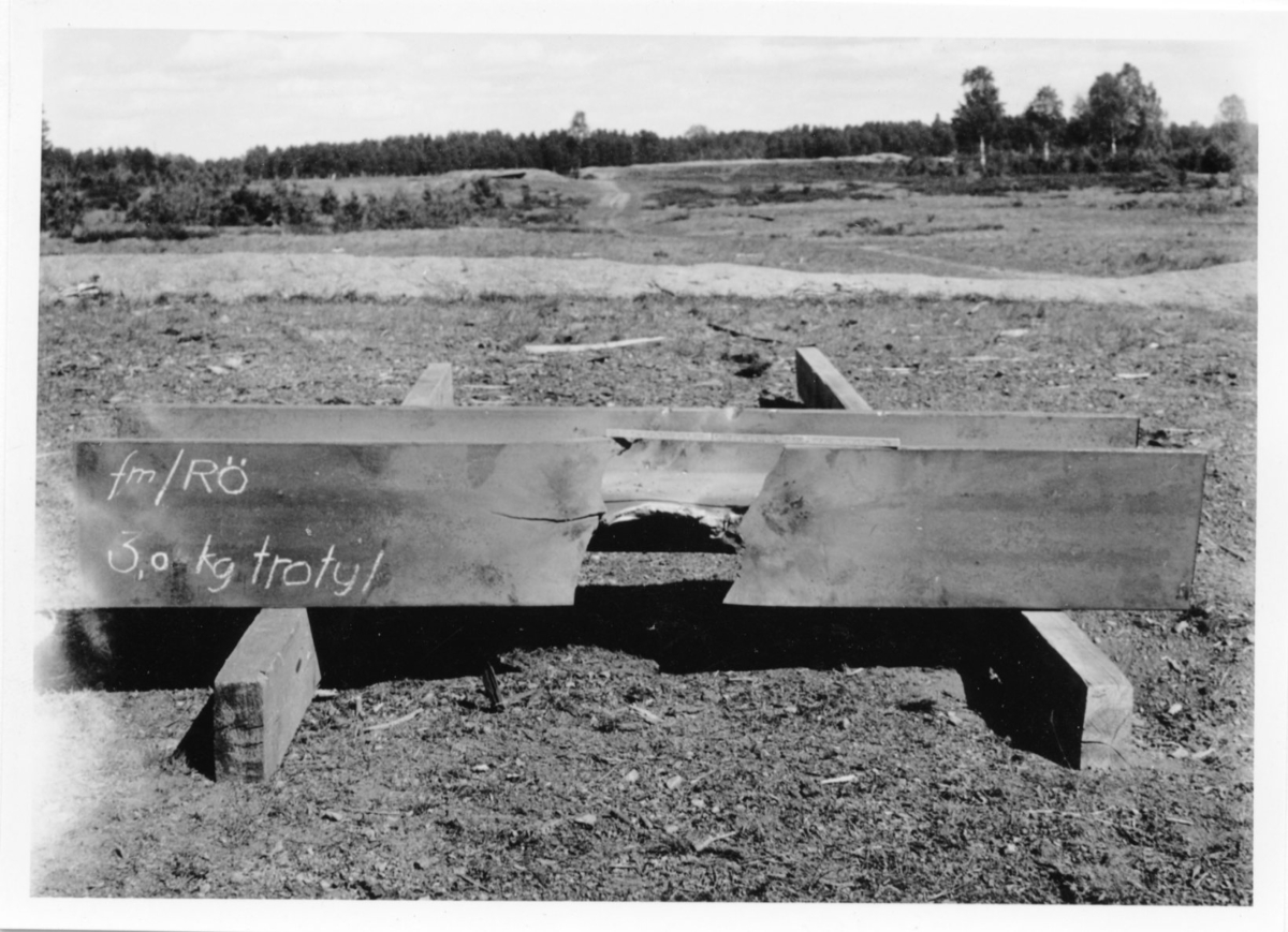 Skador efter sprängningsprov. Sprängämne 3,0 kg trotyl.