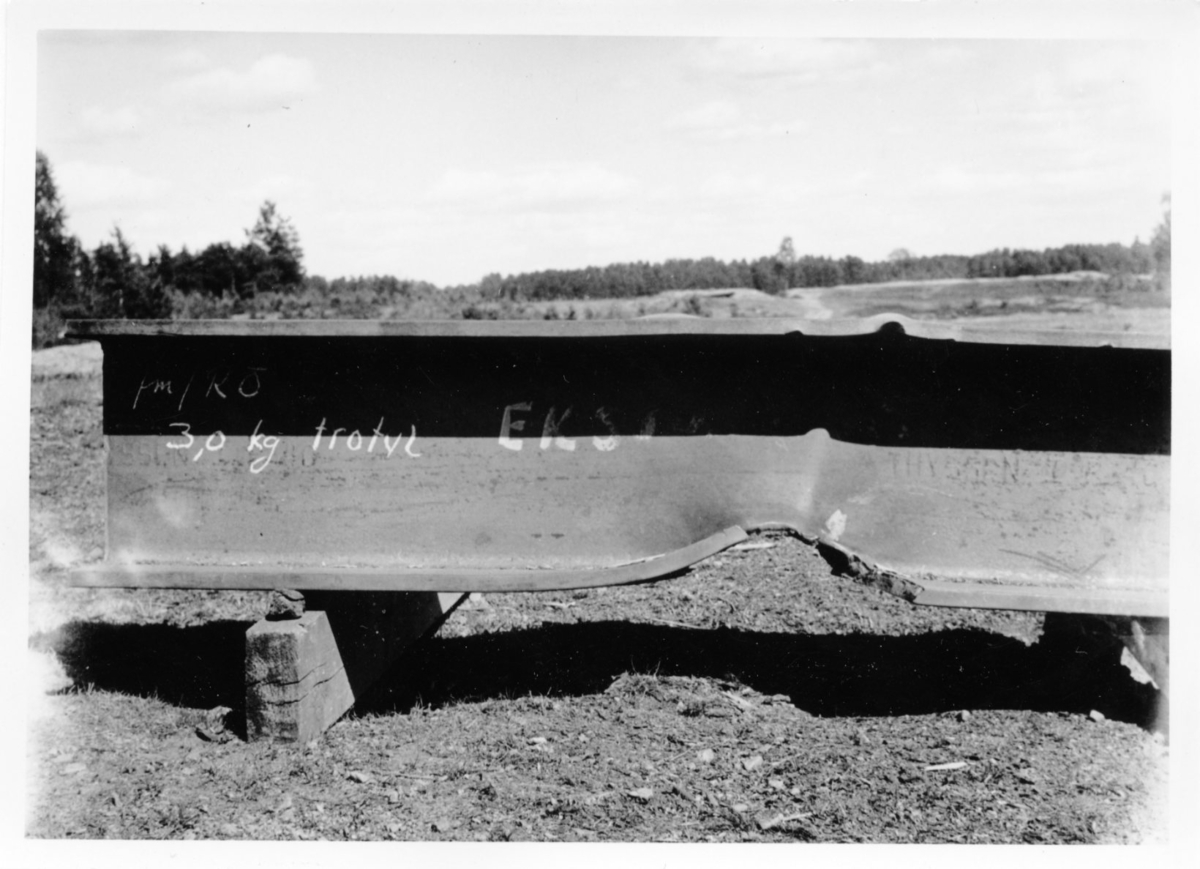 Skador efter sprängningsprov. Sprängämne 3,0 kg trotyl.