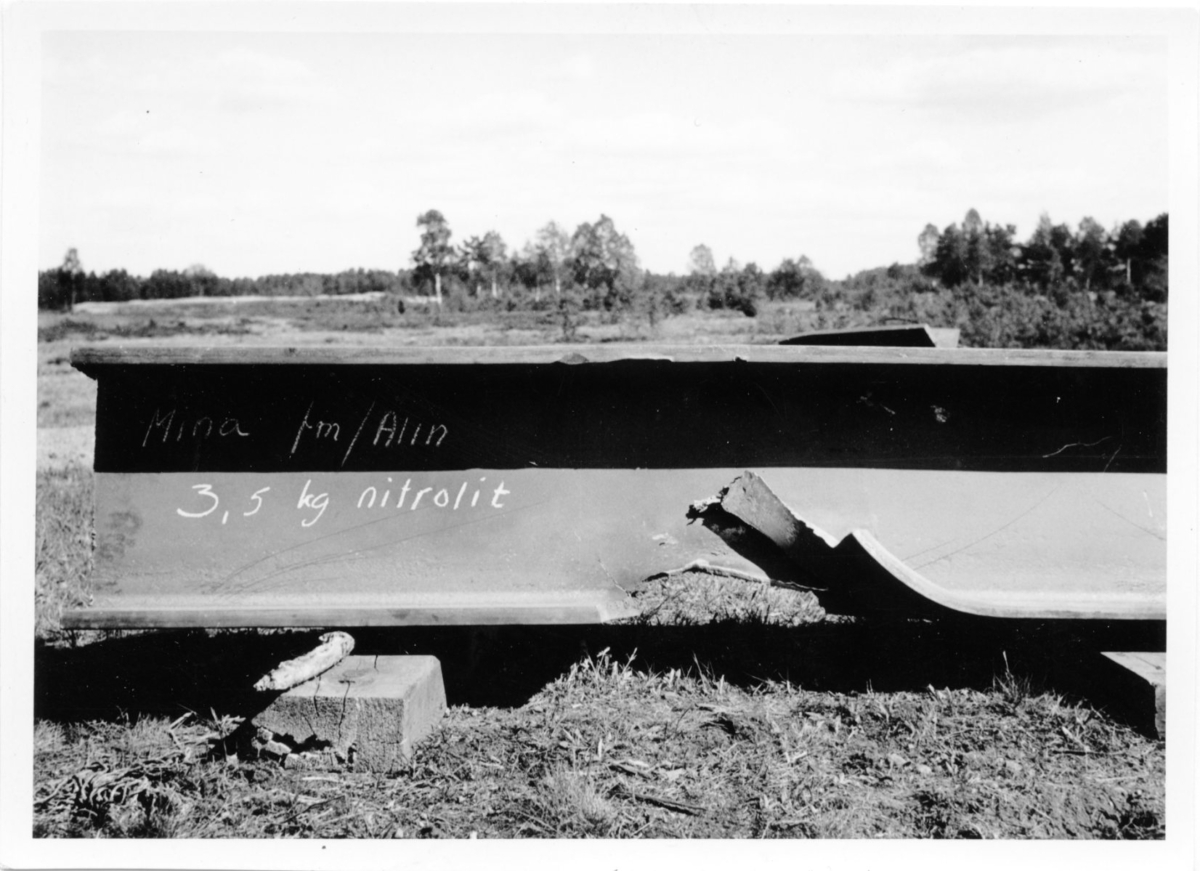 Skador efter sprängningsprov. Sprängämne 3,5 kg nitrolit.