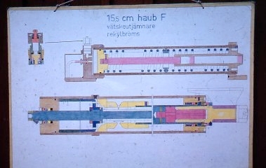Haubits F. 15,5 cm. Bilder av planscher. Vätskeutjämnare.