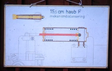 Haubits F. 15,5 cm. Bilder av planscher. Mekanismbalansering.