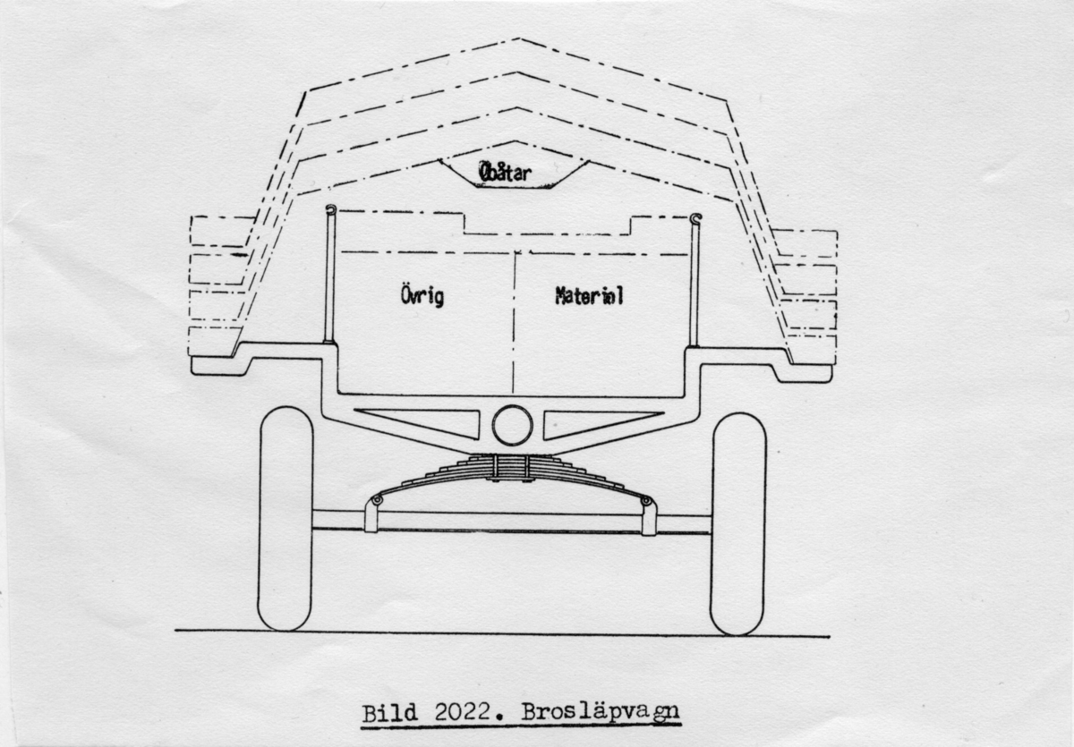 Titel: Ritning av en båt. Brosläpvagn.