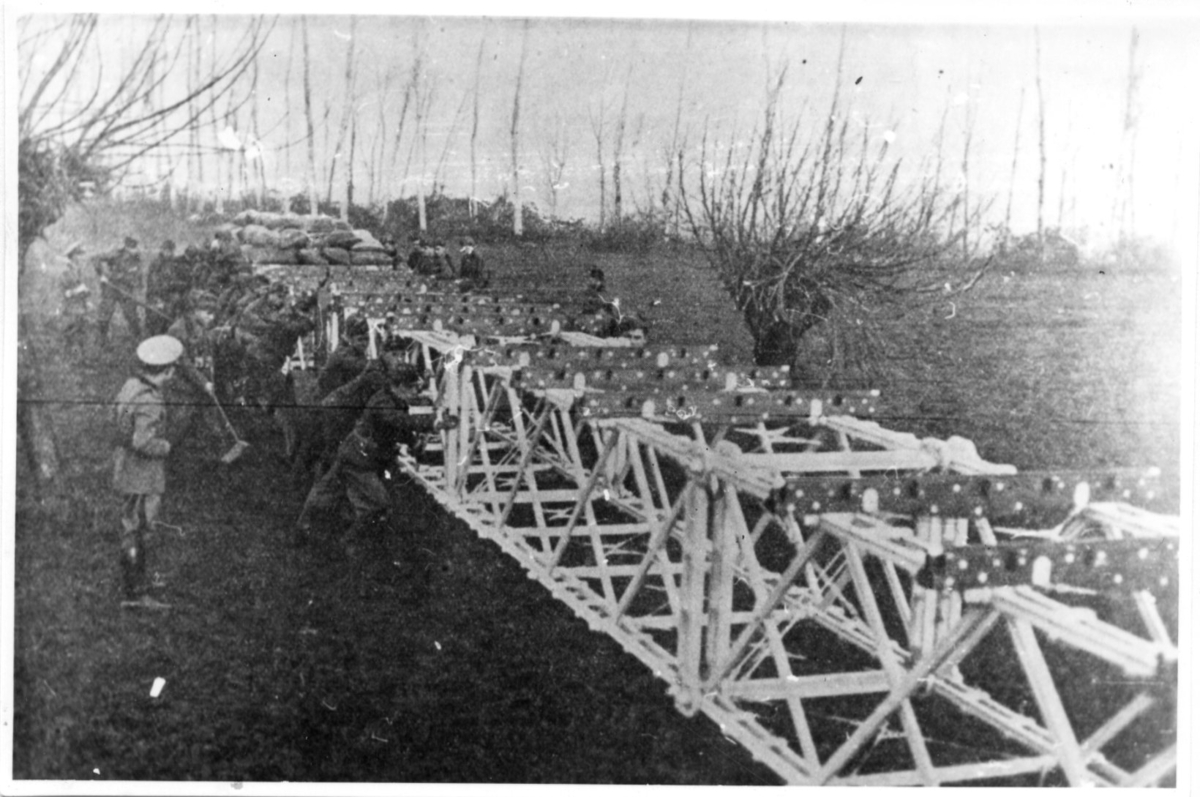 Titel: Brobygge. Italiensk fackverksbro för bergsterräng.