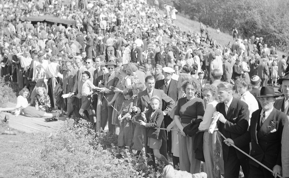 Motorcykeltävling. Publik. Backtävling i Klevaliden, Huskvarna?