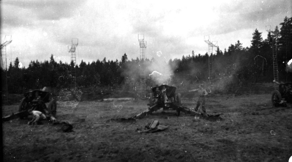 Haubits m/1939. 10,5 cm. Grundvärdesskjutningar, Skillingaryd.