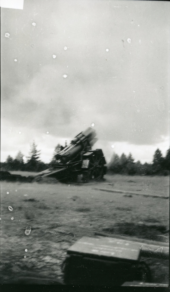 Haubits m/1917. 21 cm. Skjutning vid B 18, i Skillingayd.