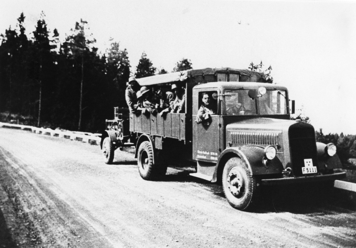 Lastbil med uppsutten personal, A 6. Västerviksmanövern.