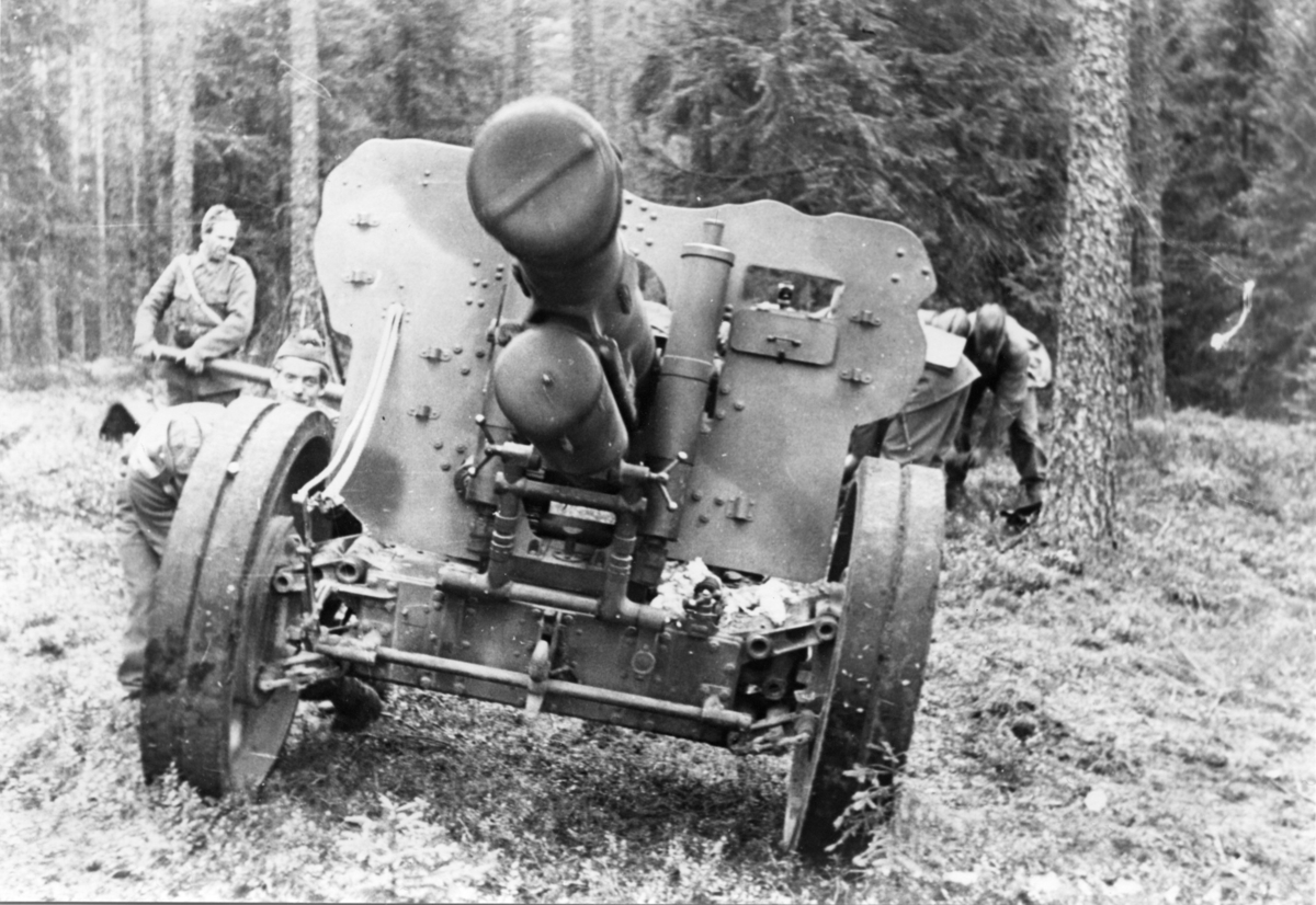Haubits m/1938, 15 cm. 9.Batt. A 6. Söder om Barnarp.