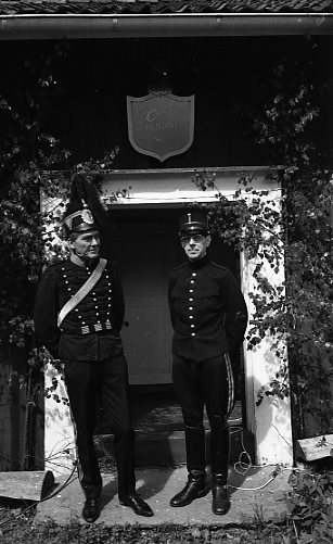 Soldattorpet i Manskapsparken. Fr vä Anders Björk, Gunnar Skoglund.