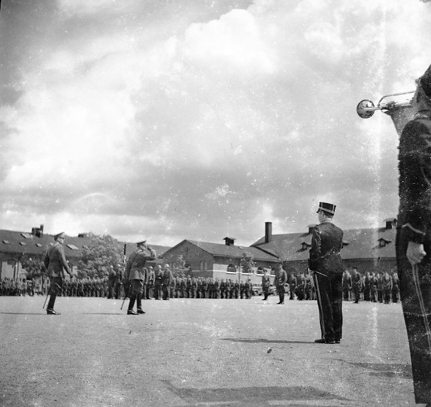 Avlämning till överste Årmann. Musikkåren i uniform m/ä.