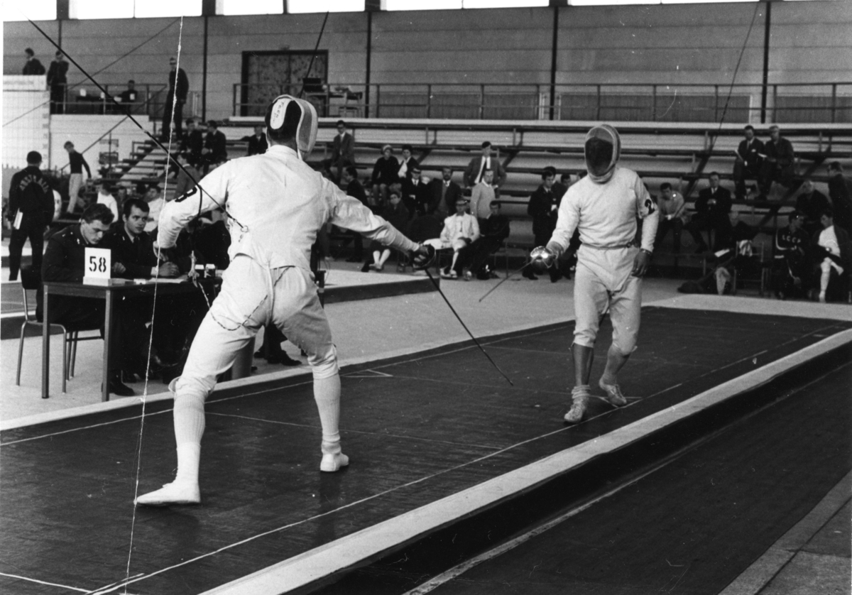 Modern Femkamp, VM. A 6, fäktmomentet i Rosenlundshallen. (Se notering).