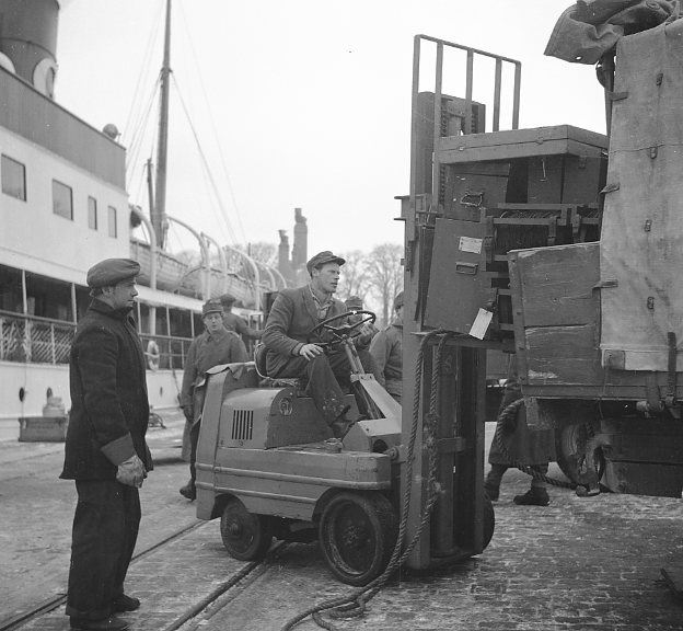Titel: Gotland, lastning av militär materiel på ett fartyg.
