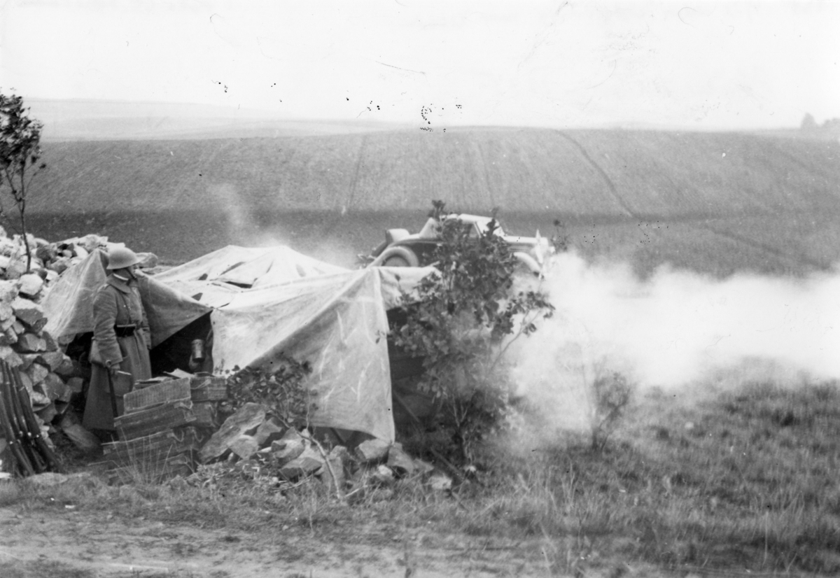 Pjäs under eldgivning, norr om Ystad. Skånemanövern, A 6.