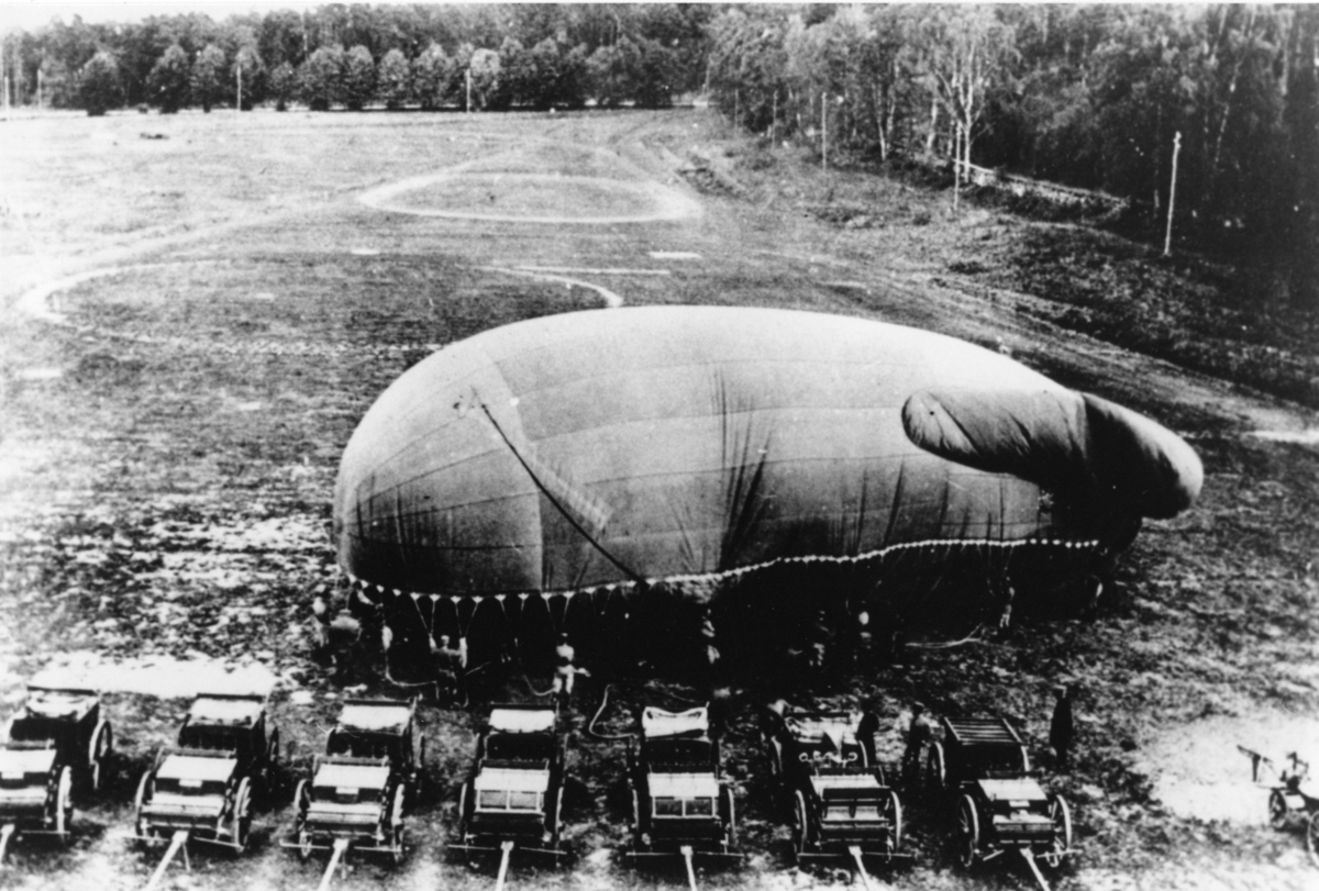 Fältballong, tysk. Typ Ae. Lilla Frösunda. Vagnarna är gasvagnar.