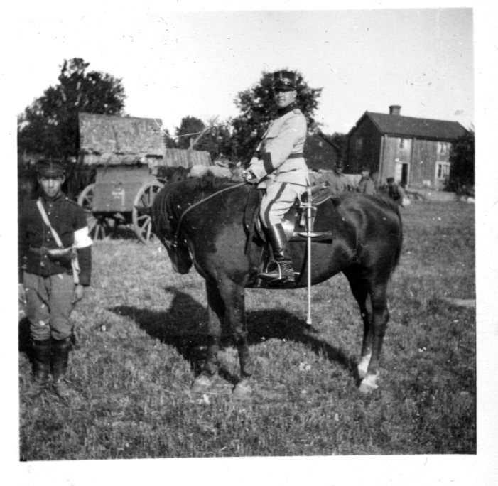 Holm, doktor. Till häst. 1.Div. A 6, på manöver.