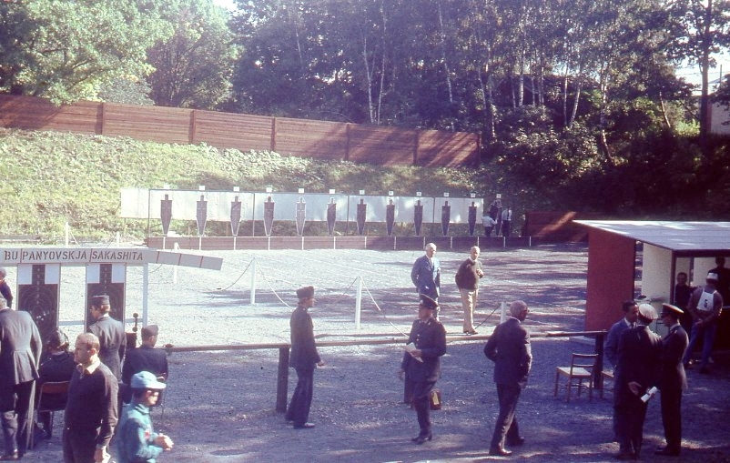 Titel: Modern Femkamp, duellskjutning. A 6 pistolskjutningsbana.