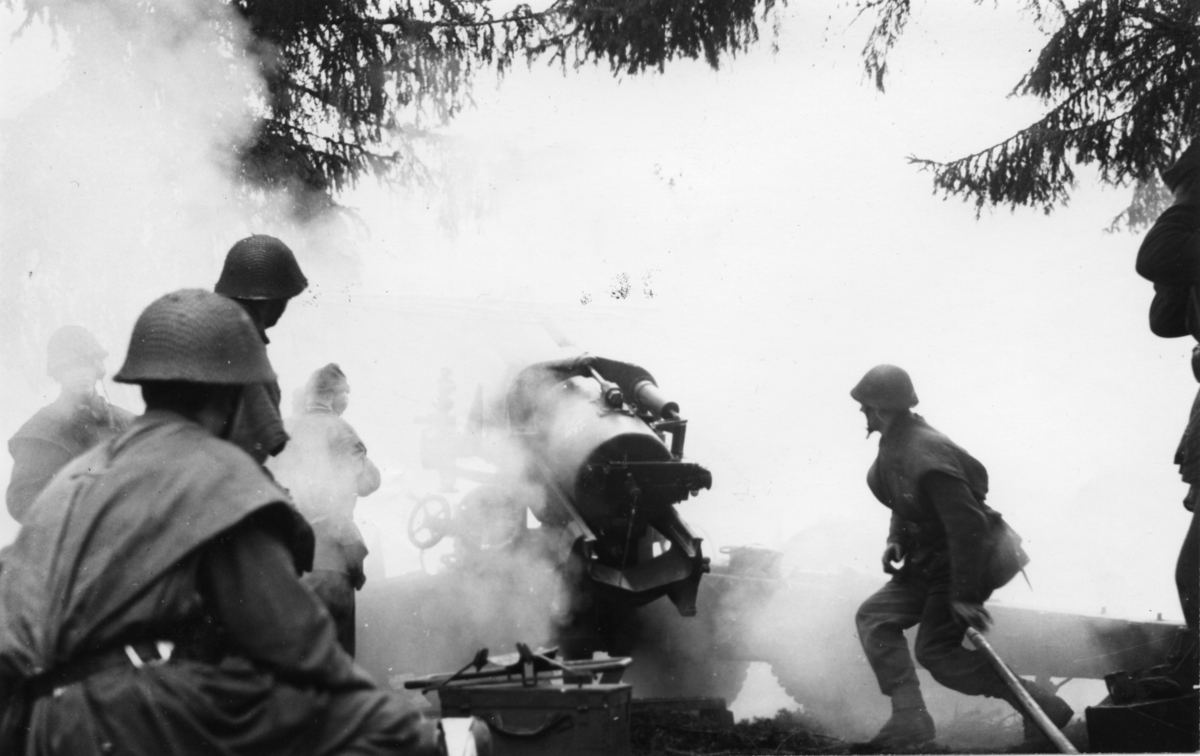 Haubits F. 15,5 cm. Eldgivning. A 6.