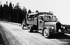 Lastbil med uppsutten personal, A 6. Västerviksmanövern.