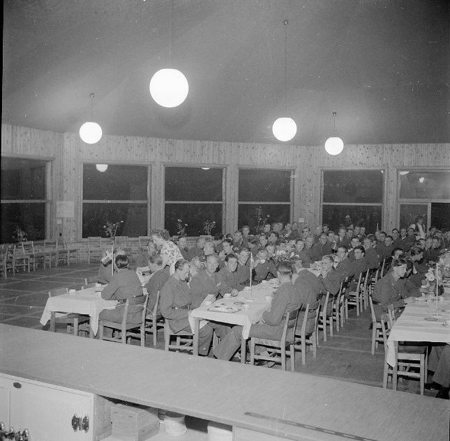 Marketenteriet, A 6. Interiör. 2 t.v. vid mittenbordet Allan Kohlstedt.