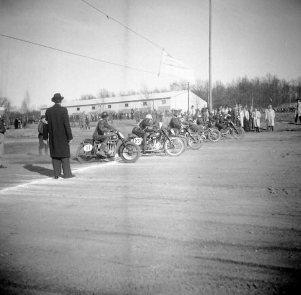 Motorcrosstävling på A 6 övningsfält. Starten.