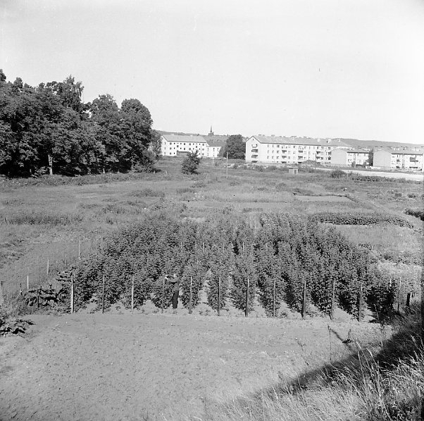 Bostadsomåde på öster i Jönköping. Tornet på Östra skolan i bakgrunden.