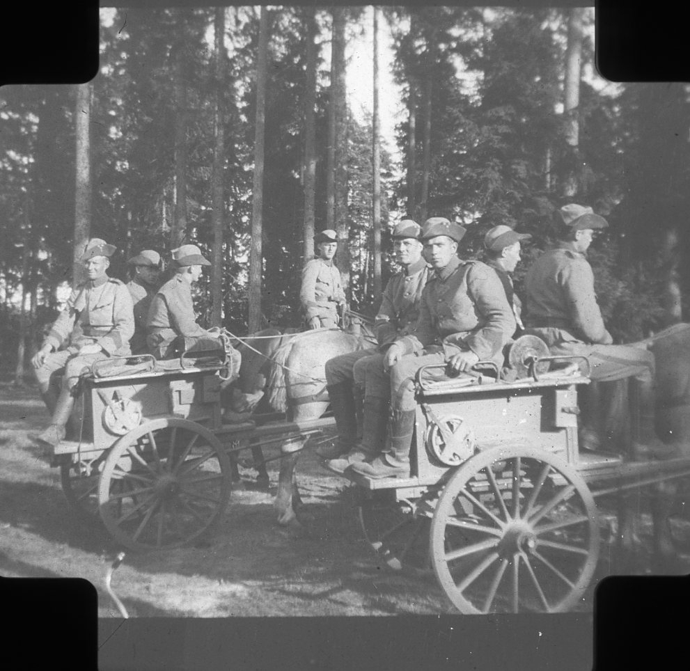 Signalkärror. Rast under marsch till Skillingaryd. Till häst: Sigstedt.