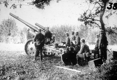 Tyska krigsmakten. 100 mm fältkanon modell 18, grupperad.