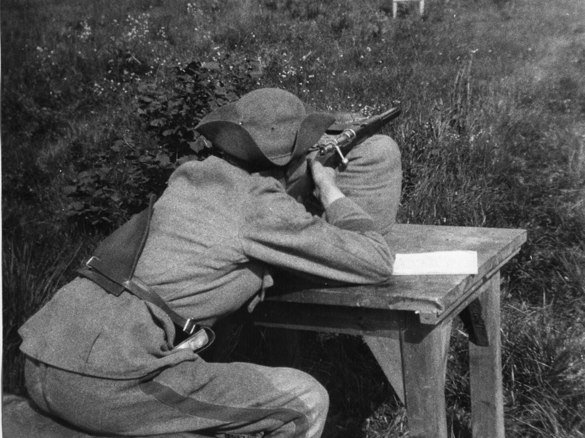 Karbin. Volontärskolan, A 6. Övningsskjutning på kammarskjutningsbanan.