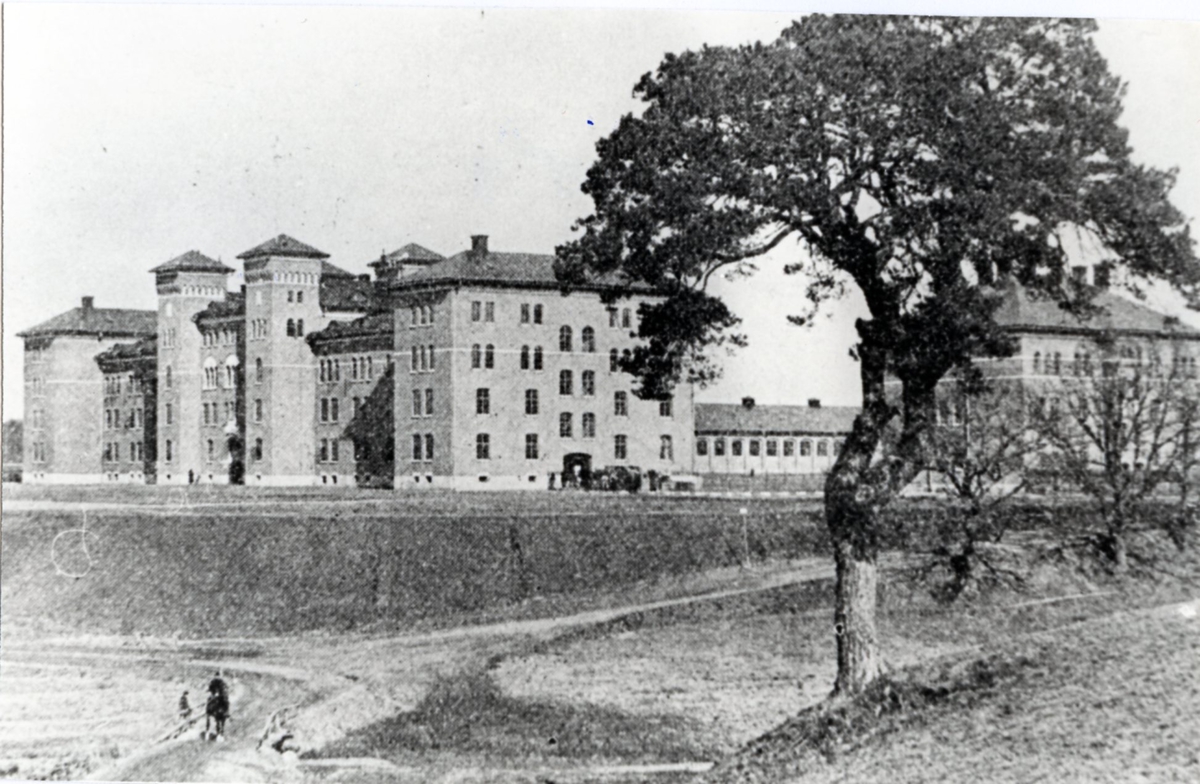 Titel: Kasern A6. Med underofficersbyggnaden till höger.