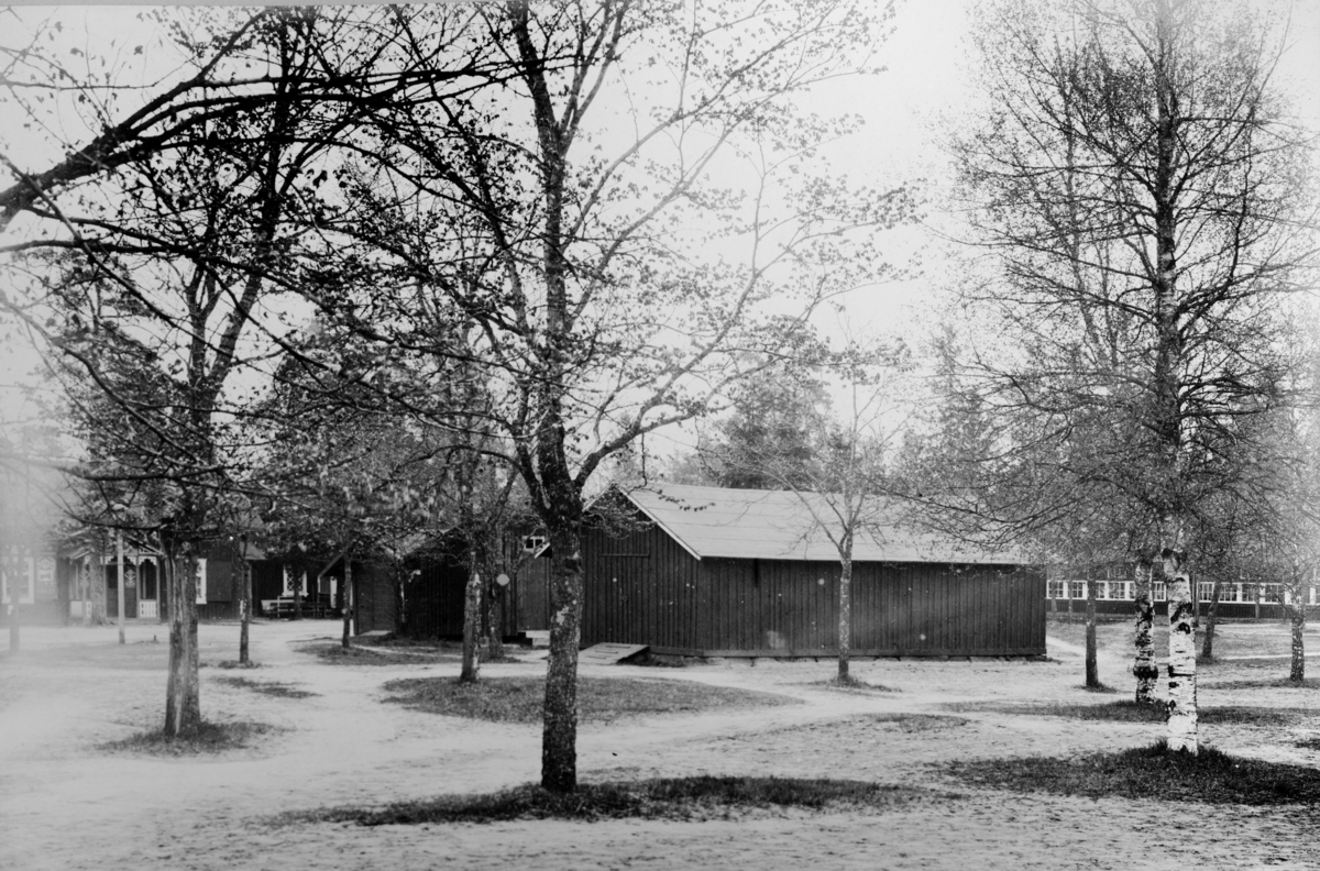 Från vänster Handelsboden, Snickeriverkstaden, Förrådsbodar och Mathall nr.33.