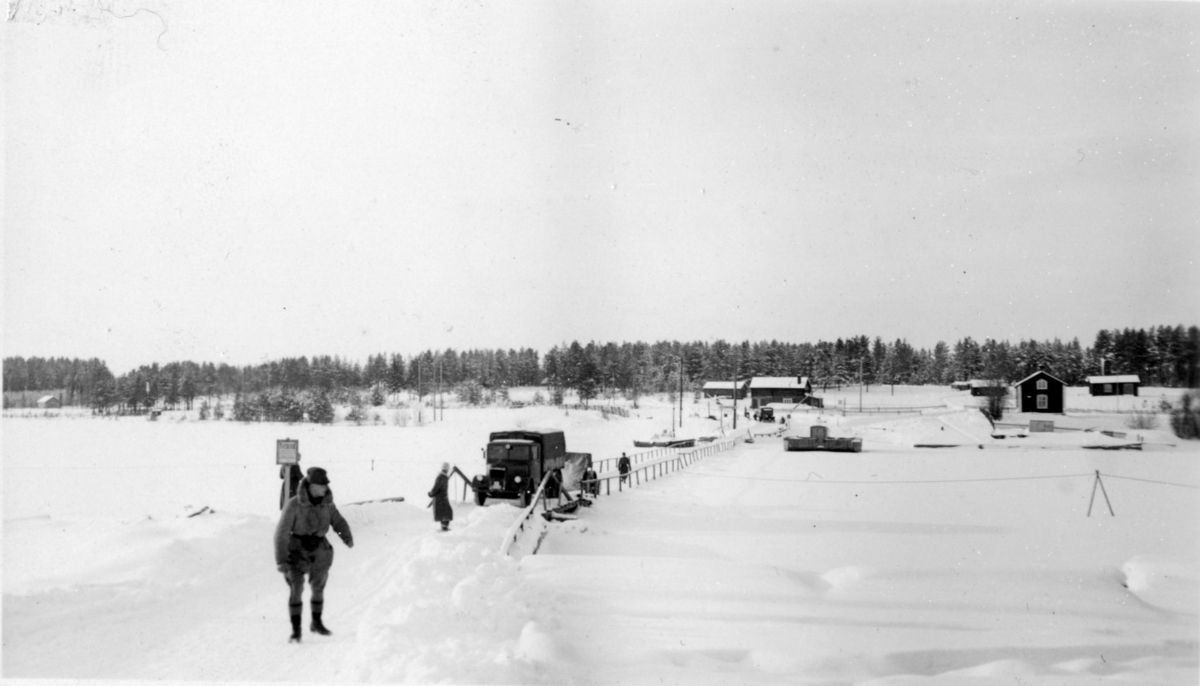 Lastbil och militärer, under vinterövning.