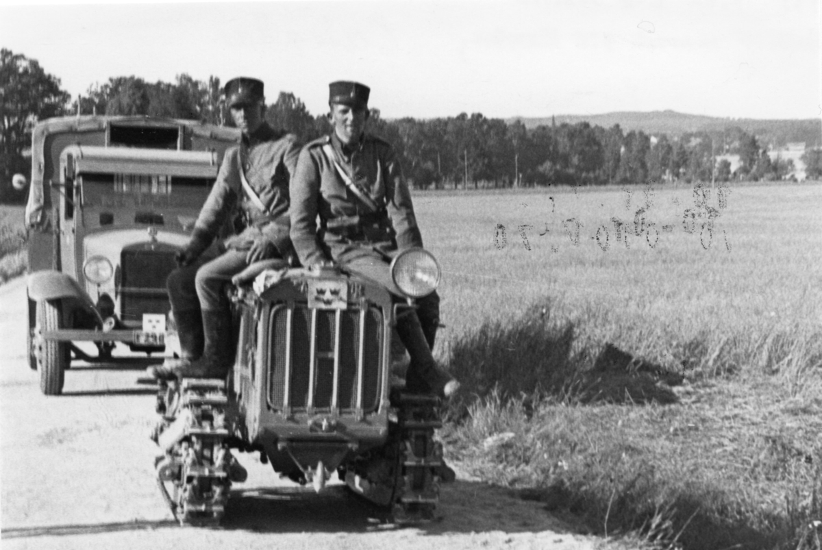 Traktor, Caterpillar, 1,5 ton. Marsch från Karlsborg, skolbatteriet.