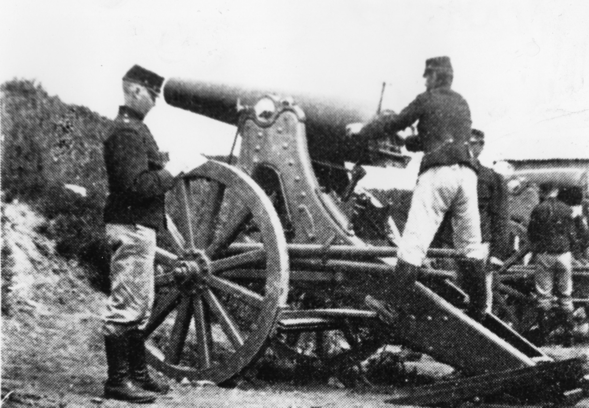 Titel: Haubits m/1885. 16 cm. Riktövning.
