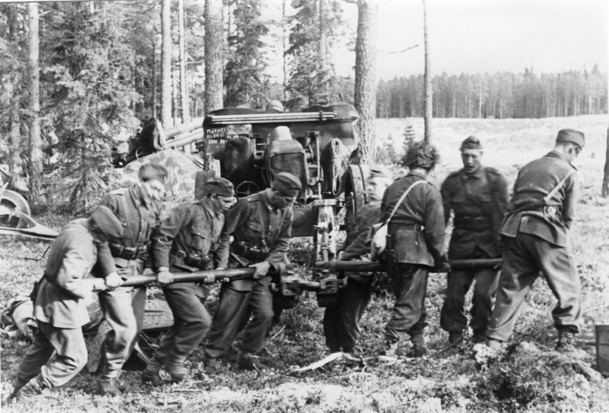 Haubits m/1938. 15 cm. Ställningsgående (handspakar), A 6.