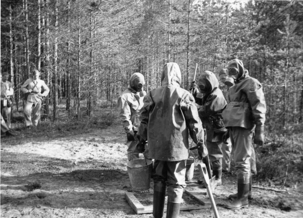 Gasskyddstjänst, stabsfurirskolan. Marma, Uppland.