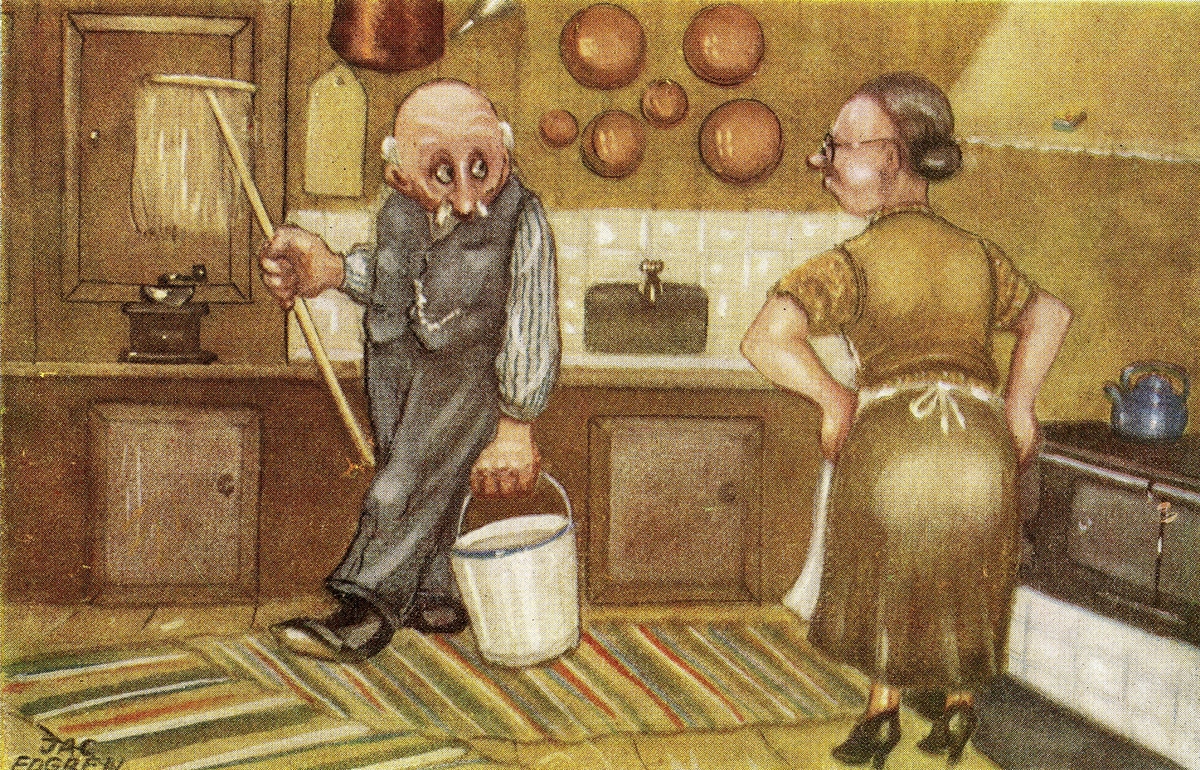 Beredskap, tvångskommendering, vykort av Jac. Edren.