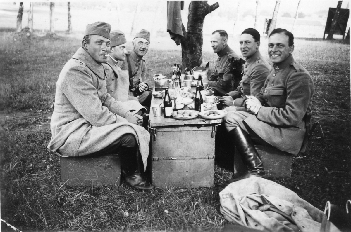 Utspisning. A 6, övningsbatt. I trakten av Skövde. Namn se notering.