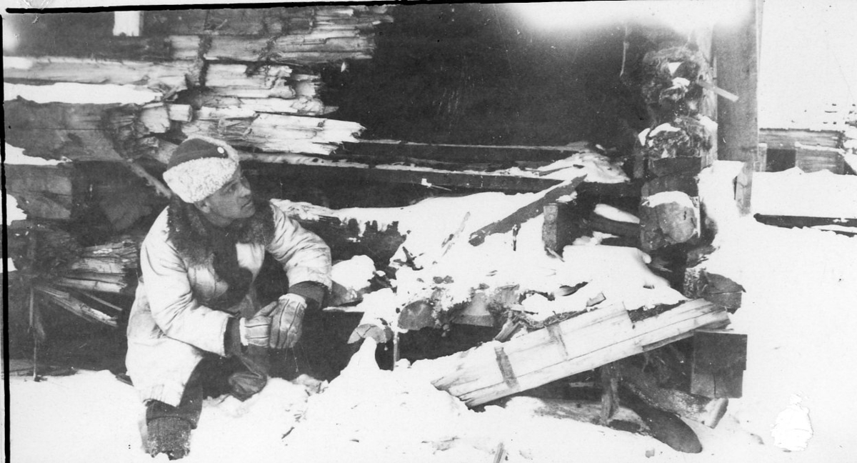 Olson, Viggo. Löjtnant. Betraktar verkan av en rysk granat.