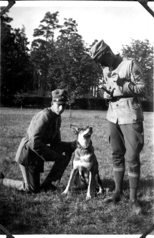 Landstormspojkar, 2 st med schäfer. Karlsborg, U 12.