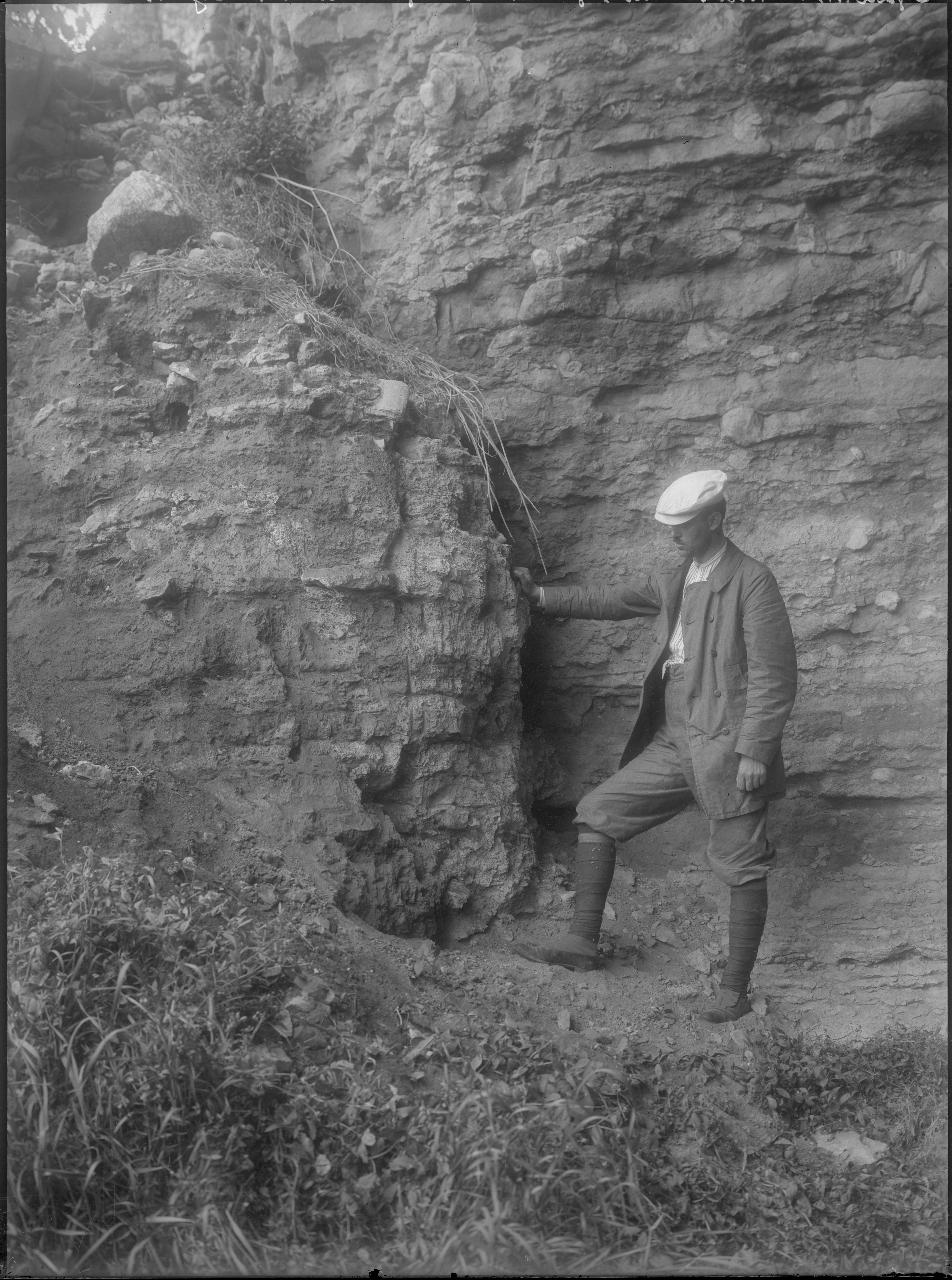 Man betraktar de sedimentära bergarterna vid Hien på Stora Karlsö.