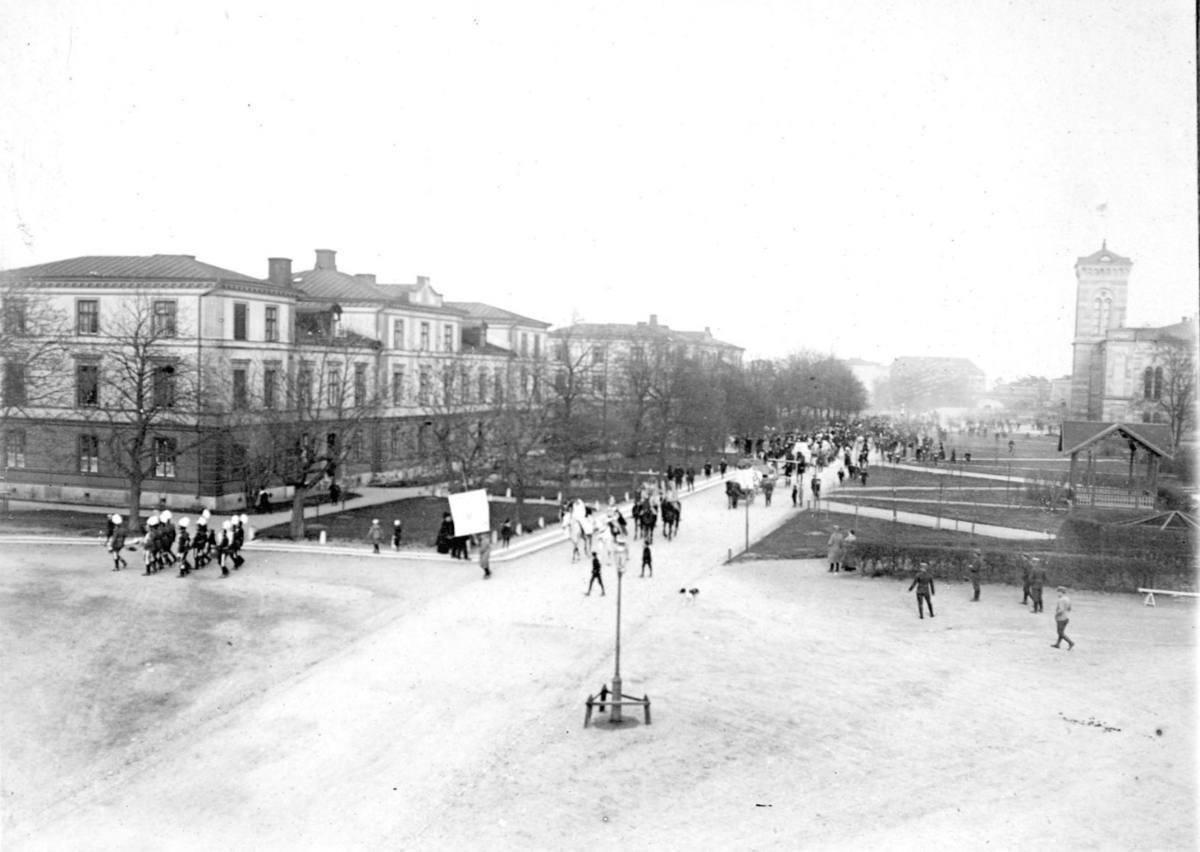 Titel: Karnevalståg på Befälsgatan, Karlsborg.