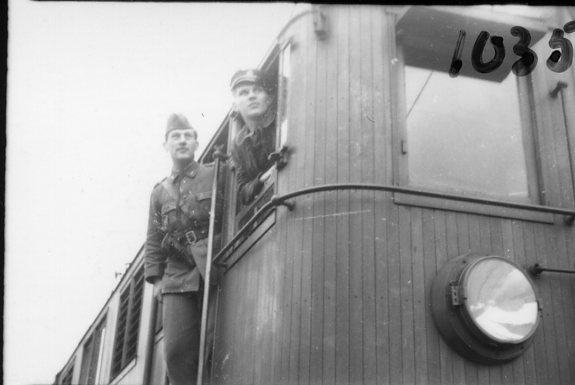 Sandstedt, sergeant, A 6, på ett ellok.