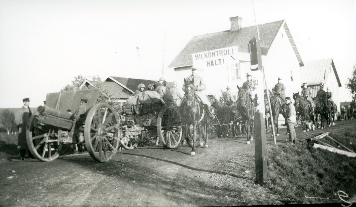 Haubits m/1910. 10,5 cm. Hästanspänd. Fälttjänstövningar.