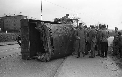 Kamratföreningen, A 6. Lastbil som vält nedanför A 6.